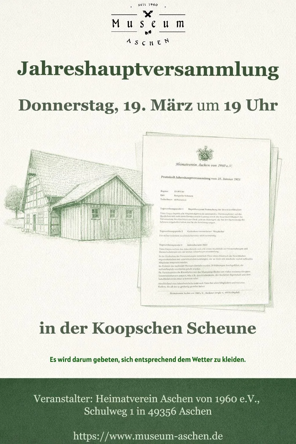Der Heimatverein Aschen lädt alle Mitglieder herzlich zur Jahreshauptversammlung ein!